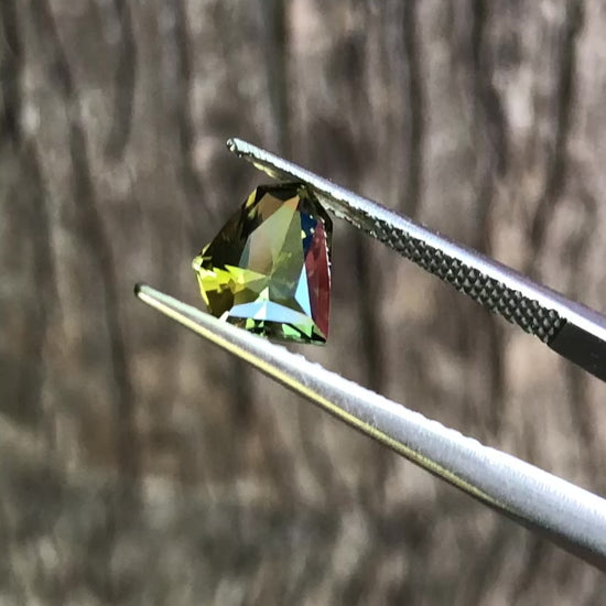 This striking loose sapphire features an expertly crafted Freeform cut that showcases its vibrant Green Yellow Parti colour. Its unique shape makes it an ideal focal point for your next jewellery design, promising refined elegance.