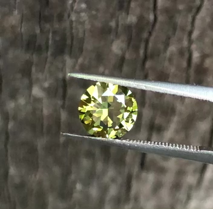 This Sapphire features a classic round brilliant cut and displays a distinct yellowish green colour, reflecting natural elegance. It is well-suited for use as the focal element in custom design projects.