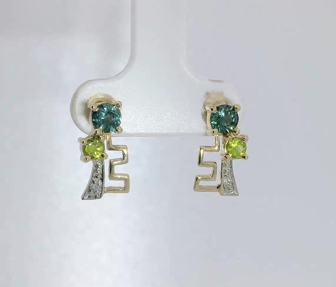 These earrings have a distinctive design with sapphires and diamonds that reflect light. Each earring features one diamond set at its base. They add elegance to any outfit and suit both casual and formal occasions.